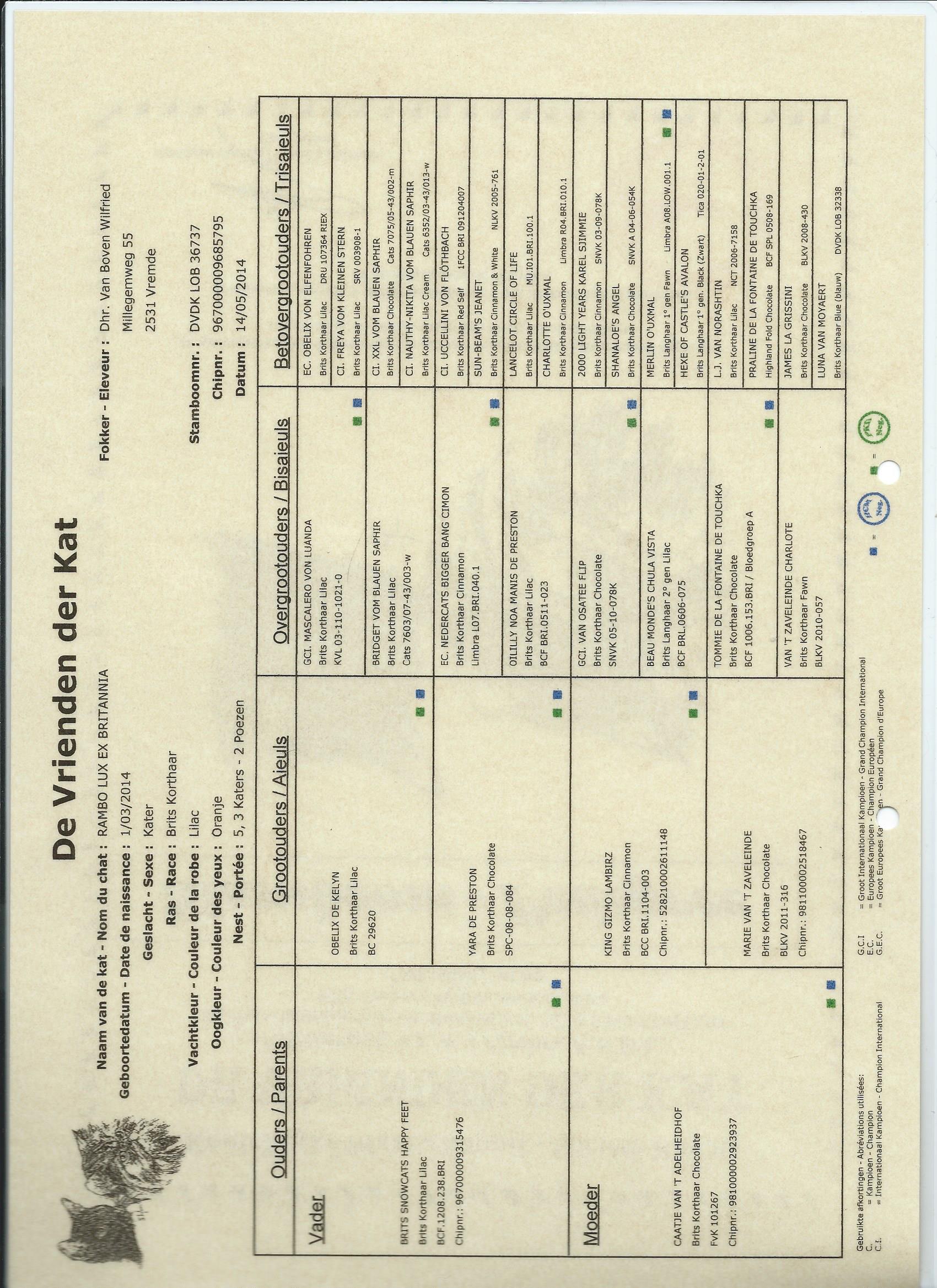 onze rambo lux ex britannia hij is geboren op 01/03/2014hij is hcm negatiefpkd dna negatieffiv en felv negatiefbloedgroep a/bin de kleur lilac
